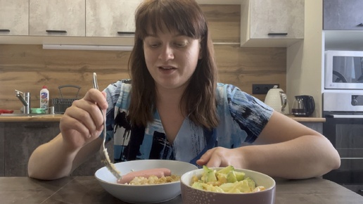 А Мукбанг ни кто не отменял/ Пожремс….Мой ужин , салат с сосисками а на гарнир РИС / делюсь рецептом теста/ Что же готовить в эту жару?😝😝😝