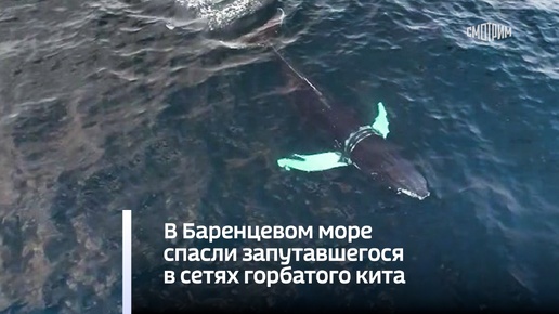 В Баренцевом море спасли запутавшегося в сетях горбатого кита