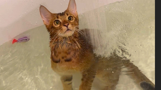 Стёпа и лейка для душа 🐱🚿 котёнок чаузи в своей любимой среде обитания 💦
