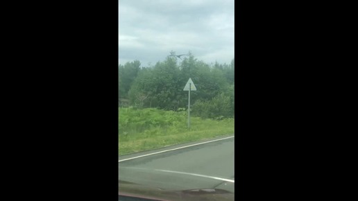 Аист. Катался в субботу 15 июня 2024 г по Ленинградской области. Очень много аистов. Одного удалось заснять в полете.
