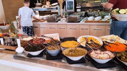 Шведский стол в отеле Эрбелия. Роза Хутор. Сочи.