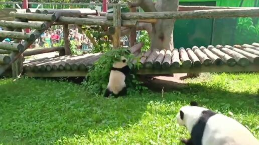 Панды Диндин и Катюша из Московского зоопарка играют в догонялки