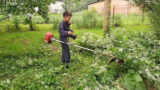 Покос травы бензокосой