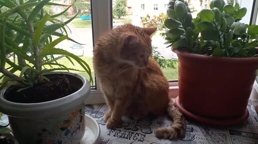 Жара. Невыносимая жара. В Сибири. В тени +30, на солнце +50. Кот помылся в жару. Комнатные цветы. Алоэ. Каланхоэ. Видео. Заходите. Дружим