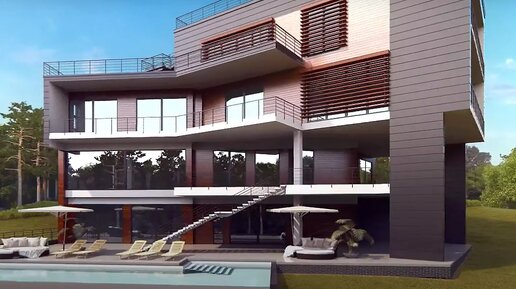 Проект трехэтажного коттеджа в лесу 🔝 Общая площадь 1500 м² ✅ Современный загородный дом с бассейном