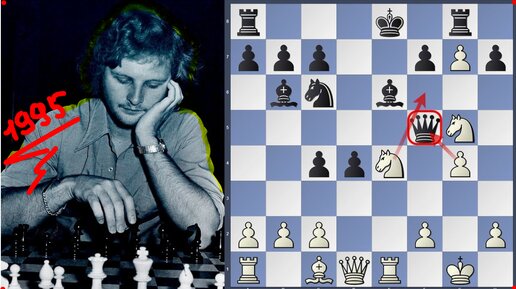 Тони Майлс против Владимира Крамника: красивая жертва коня 45.♘xc6 приводит к победе на 61-м ходу. Рапид-партия 1995 года в Лондоне, 1-0
