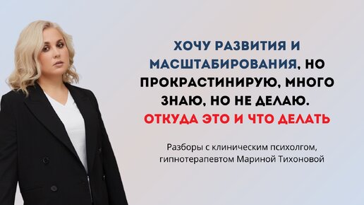 Хочу развития и масштабирования, но прокрастинирую, много знаю, но не делаю. Откуда это и что делать
