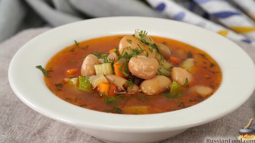 Первое блюдо из двух ингредиентов. Суп с фасолью и кабачками