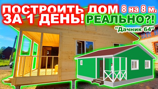 ПОСТРОИЛИ ЗА 1 ДЕНЬ! Каркасный, дачный, недорогой, 1 этажный дом 8 на 8 метров, с крыльцом. Проект дома “Дачник 64”.