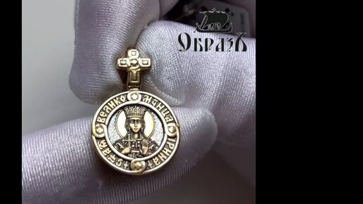 Образок «Святая великомученица Ирина Македонская. Ангел Хранитель», золото 585 проба желтое (арт. 202.136)