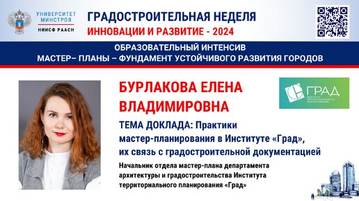 ВИДЕО. Бурлакова Е.В. Практики мастер-планирования в Институте «Град», их связь с градостроительной документацией