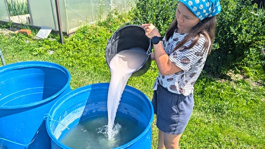 Чтобы все овощи хорошо плодоносили летом, выливаю в бочку для полива разведенную азофоску. Рассказываю в деталях.