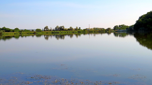 Утро на озере. Черепаха греется, чомга ныряет, лысухи спрятались.