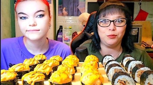 Мукбанг | Огромные роллы стоимостью крыла самолёта ✈️ 😂. Едим их раз в месяц. Обжорчик 😋😊