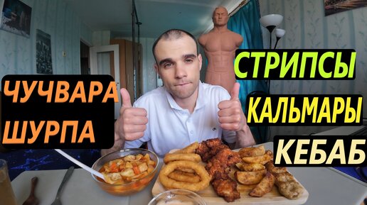 МУКБАНГ ЧУЧВАРА ШУРПА / КЕБАБ ИЗ КУРИЦЫ / КАРТОФЕЛЬ ЗАПЕЧЕННЫЙ / КОЛЬЦА КАЛЬМАРА / СТРИПСЫ / ОБЖОР / EATING Mukbang / ASMR АСМР