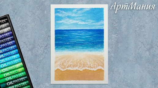 Как нарисовать море и пляж масляной пастелью поэтапно для начинающих. Морской пейзаж.