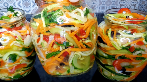 Беру кабачки и готовлю необычный салат на зиму! Готовьте сразу тройную порцию, аналог корейским салатам