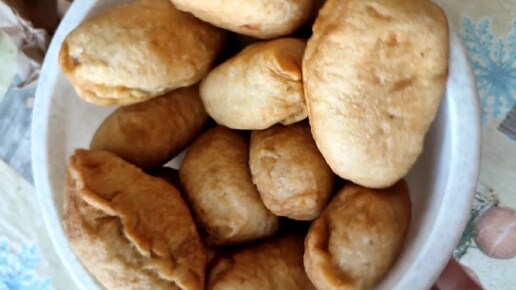 Много пирожков и один пончик. Дачные гурманы. Лук, яйцо, соль, тесто. Масло растительное.