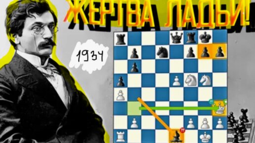 Экс-чемпион мира по шахматам Эмануил Ласкер против Ханса Мюллера (Цюрих, 1934) - красивый каро-канн с победой белых. Жертва качества 11.♕xb7