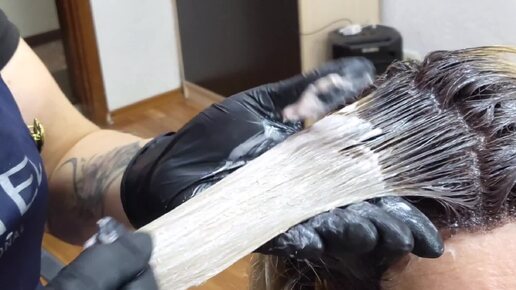 Окрашивание седых волос в технике "растяжка цвета"