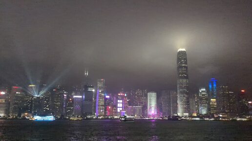 Ночное шоу "Симфония огней" на набережной Чимсачёй в Гонконге