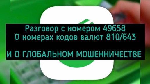 РАЗГОВОР С НОМЕРОМ 49658 о номерах кодов валют 810/643 И О ГЛОБАЛЬНОМ МОШЕННИЧЕСТВЕ
