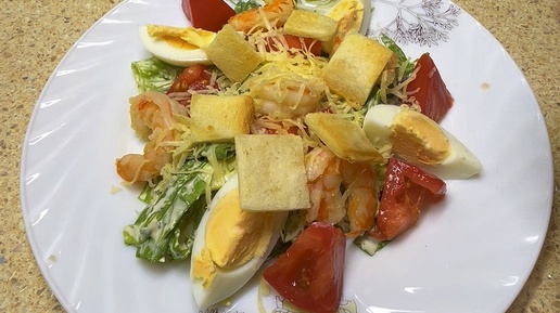 «Цезарь» с креветками по домашнему! Не уступает ресторанным версиям!Очень вкусный и аппетитный! Хочешь удевить гостей -готововь обязательно!