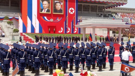 Супер торжественная церемония встречи Путина в столице КНДР Пхеньяне
