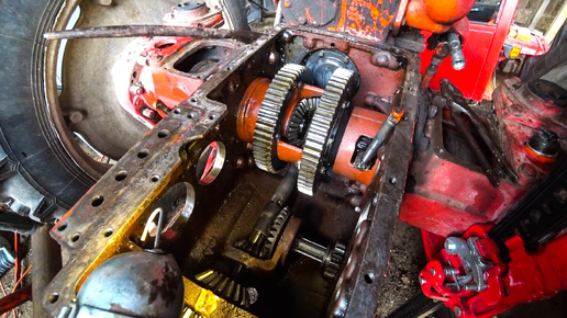 Трактор Т-25, продолжаем ремонт. Сборка КПП и главного редуктора. Ставлю на место бортовой редуктор.