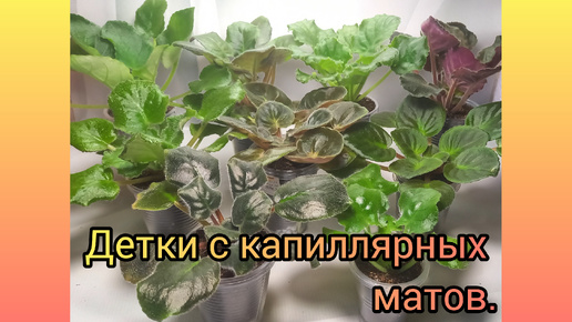 Перевалки деток фиалок, которые росли на капиллярных матах.