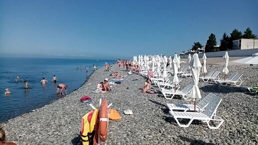 Раннее утро на пляже Sport Inn в Имеретинке - лучшее время для пляжного отдыха в середине июня.