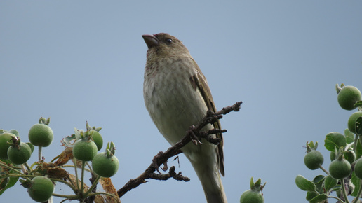 Самка чечевицы поёт.