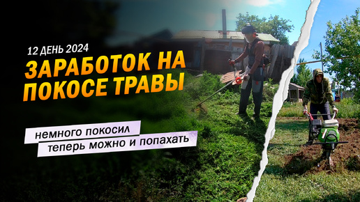 12 | Немного покосил, теперь можно и попахать. Заработок в деревне на покосе травы триммером.