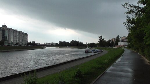 Набережная, река и небо. Дождь пошёл в городе. Я под зонтом, сегодня 20 июня 2024 год