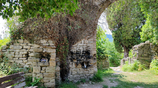 Ахштырский храм, висячий мост, вид на реку Мзымта