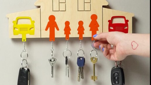 Семейная Ключница настенная в прихожую из дерева ручной работы .