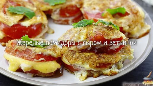 Овощи, мясо и сыр в одной закуске. Жареные помидоры с ветчиной и сыром