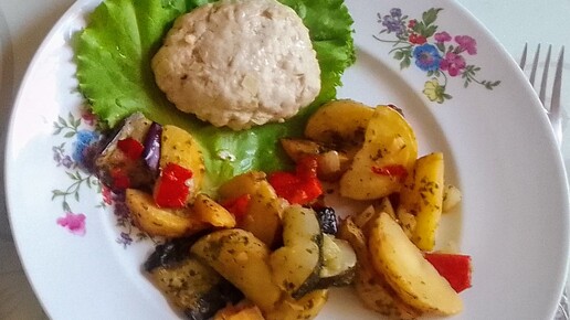 Котлеты из индейки на пару и овощи в Аэрогриле.