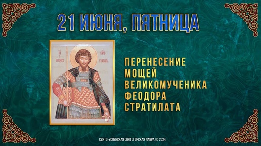 Перенесение мощей влмч. Феодора Стратилата. 21 июня 2024 г. Православный мультимедийный календарь