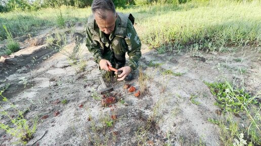 Услышал в кирпиче сигнал цветного металла и решил расколотить его, чтобы узнать, что внутри.