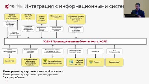 Интеграционное взаимодействие решения «1С:EHS Комплексная производственная безопасность КОРП» с 1С:ERP и другими смежными системами