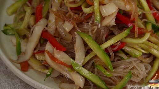 Изысканность в каждой нотке. Салат с фунчозой и кальмарами