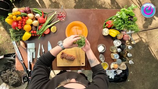 Сегодня приготовим необычный, яркий и вкусный мясной салат с рукколой, помидорами и… заправкой из малины