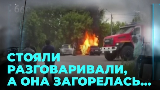 Иномарка без причины вспыхнула в спальном районе мегаполиса