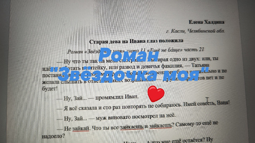 Отрывок из романа "Звёздочка моя" , "Как старая дева на Ивана глаз положила" читает автор Елена Халдина