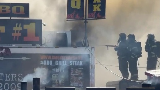 Подгоревшие «Копчёные кости» на Пулковском шоссе тушили сотрудники МЧС