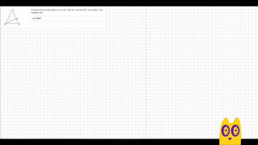 В треугольнике ABC известно, что AC = BC, AH – высота, AB = 8, cos∠BAC = 0,5. Найдите BH.