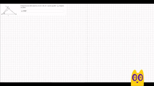 В треугольнике ABC известно, что AC = BC, AH – высота, tg∠BAC = 7/24. Найдите cos∠BAH.