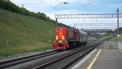 Тепловоз ТЭМ2-7208 с вагоном-лабораторией.