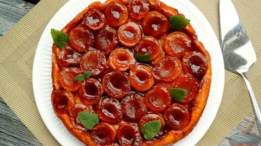 Пирог-перевертыш с половинками абрикосов в карамели. Абрикосовый тарт-татэн